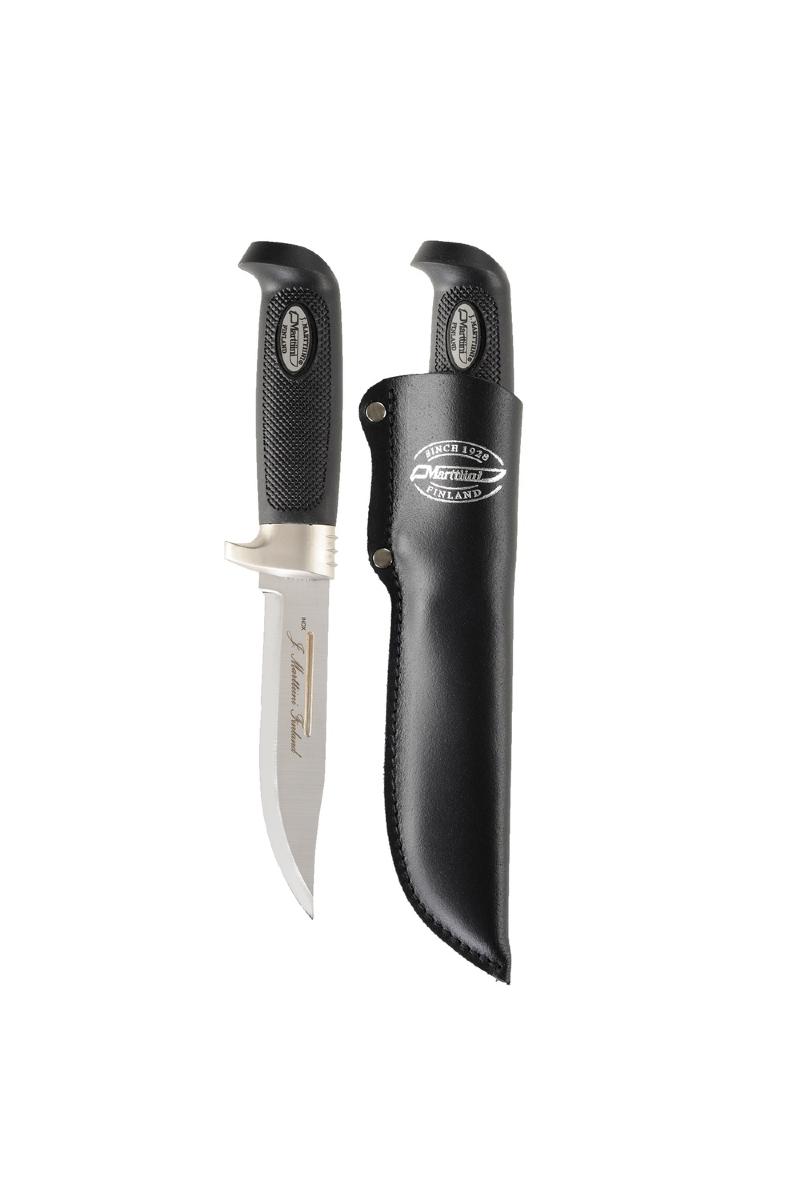 Lang allround jaktkniv, perfekt for slakting i felt. Gummiert håndtak med mønster sikrer godt grep. Fingerbeskytter for sikkerhet. Blad i rustfritt Inox stål med blodrand gjør at kniven glir lett og gjør den enkel å rengjøre.