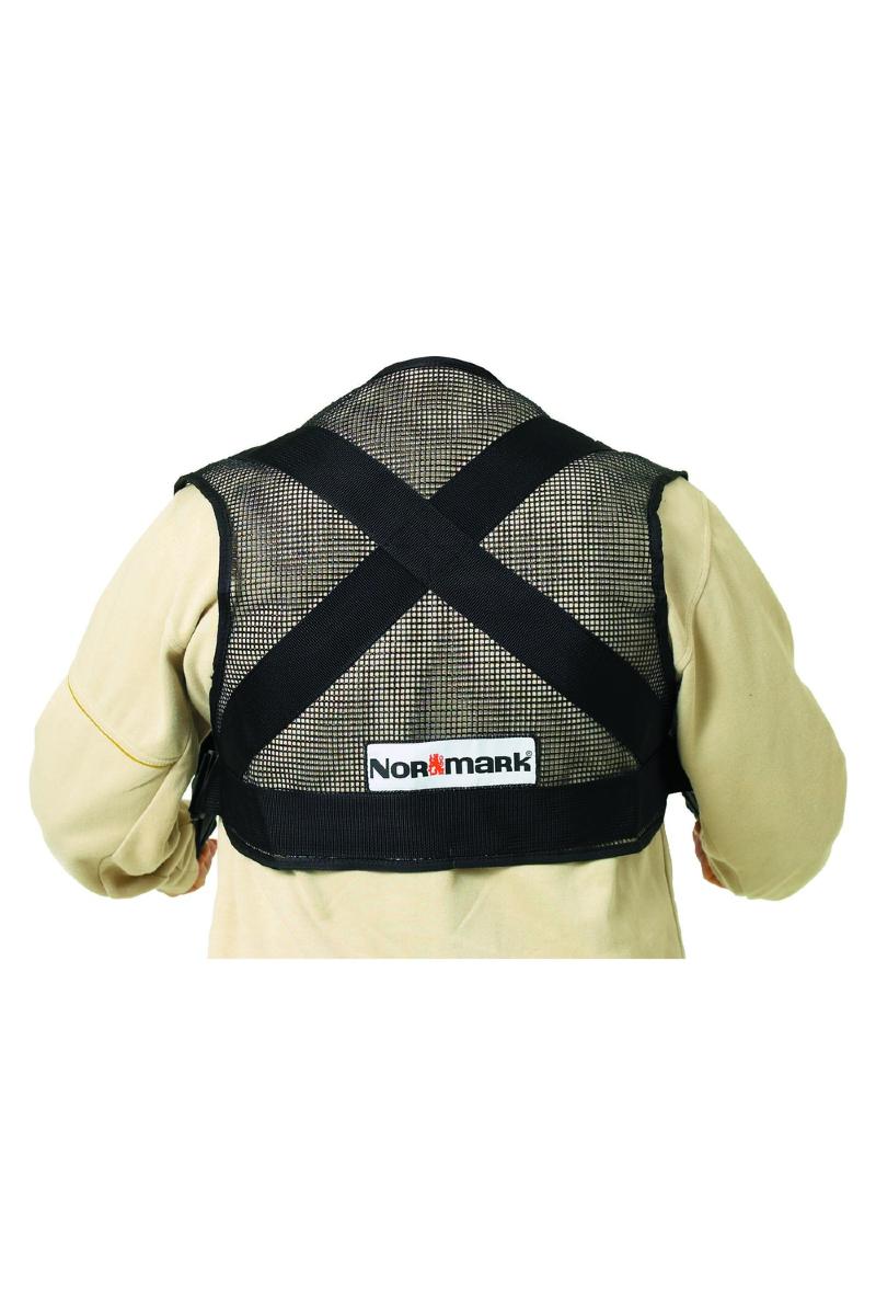 Ringer av forkrommet stål, rustfrie forkrommede festekroker til snelle. Vesten er produsert i PVC-forsterket solid netting av polyester.